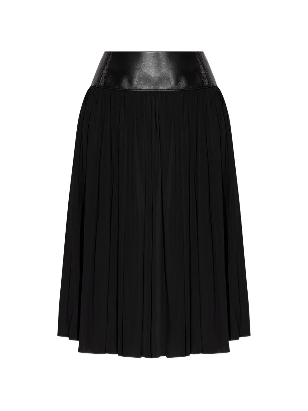 pleated leather-belt midi skirt