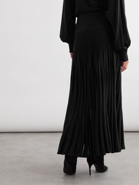 Alaia’s skirt is designed with tiered pleats that create fluid movement as you walk. Knitted from fine wool, it has a wide waistband that sits high on the waist and falls to a midi length. Size & Fit - Fits true to size, take your normal size - Midi-length, designed to be worn at the hip - Lightweight knit - Model is 177cm/ 5'10" and is wearing a FR 34 Model measurements: - Bust: 79cm/ 31" - Waist: 61cm/ 24" - Hip: 89cm/ 35" Details & Care - Black wool - Slips on - 100% virgin wool; trim: 90% wool, 9% polyamide, 1% polyurethane