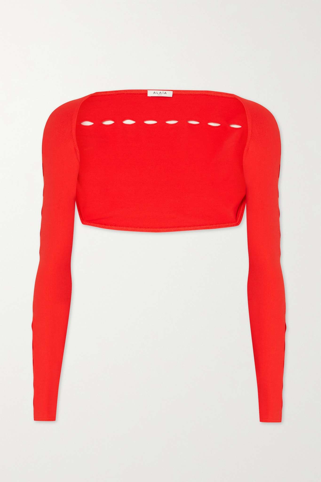 EDITORS'NOTES Whether beach-bound or headed back to the hotel, Alaïa's cardigan is a chic way to cover up your favorite swimwear. It's knitted with plenty of stretch and has pointelle detailing at the cuffs. Style yours with the matching midi skirt and a basket bag. SIZE & FIT - Fits true to size, take your normal size - Take the next size up if you wish to achieve a looser fit - Designed for a close fit - Mid-weight, stretchy fabric - Model is 175cm/ 5'9" and is wearing a FR 36 DETAILS & CARE - Scarlet pointelle-knit - Slips on - 82% nylon, 18% elastane
