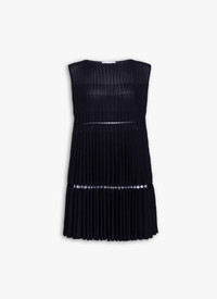 Tank mini dress knitted from pointelle pleats with integrated open-work line Scoop collar, plain fitted bodice, flare skirt Fit and flare cut Made in Italy DETAILS MAIN MATERIAL : 94% VISCOSE 6% POLYESTER PRODUCT REFERENCE : AA9R2674K078B - 995