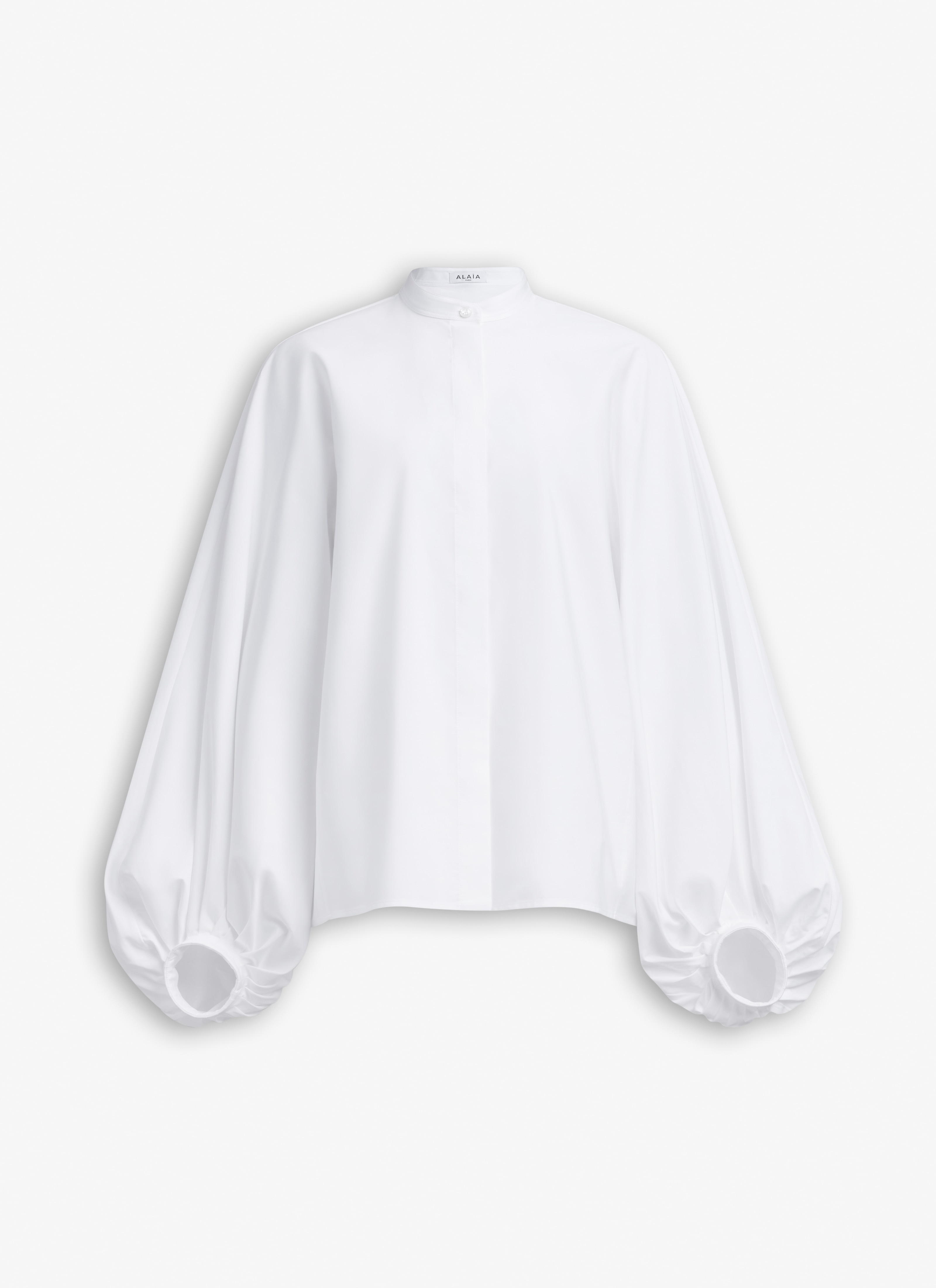 Cotton poplin shirt with long ballon sleeves Voluminous sleeves gathered at the wrists, band collar Made in Italy DETAILS MAIN MATERIAL: 100% COTTON PRODUCT REFERENCE: AA9C0977T611A - 000