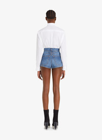 flared leg jeans signature alaïa stitches at the back made from stone washed blue denim made in italy DETAILS COMPOSITION: 100% COTTON ADDITIONAL MATERIAL: 83% VISCOSE, 17% POLYESTER PRODUCT REFERENCE: AA9C08501T246 - 000