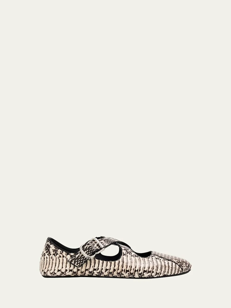 ALAIA ballerina flats in snakeskin leather 0.17 in / 5 mm flat heel Round toe Crisscross buckle strap Rubber outsole Lining: Leather Made in Italy