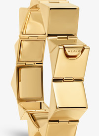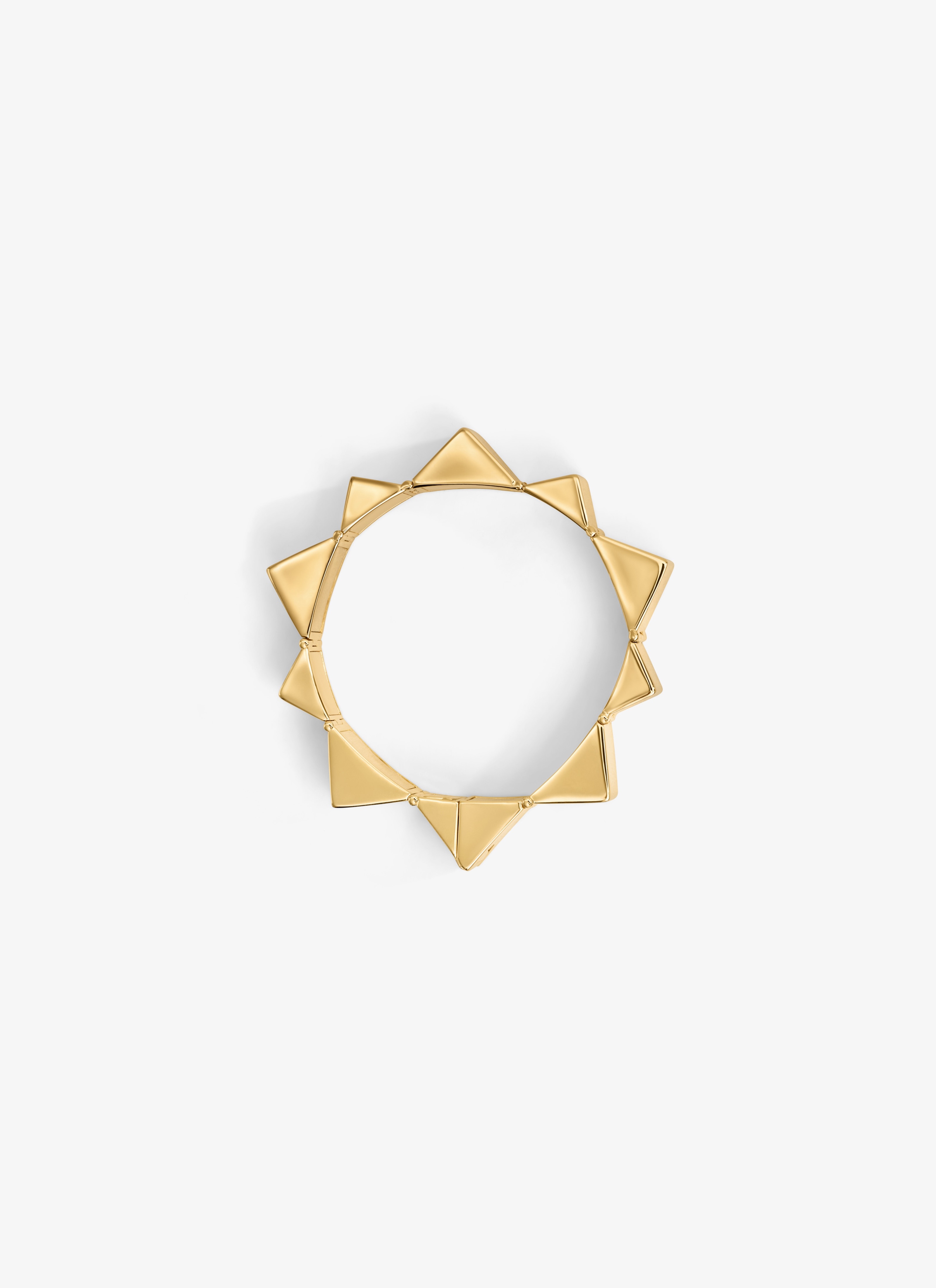 Thin hinged bracelet with pyramid design Diameter: 6cm Width: 1,5cm Made in Italy DETAILS MAIN MATERIAL: 100% BRASS PRODUCT REFERENCE: AA2B105LA006 - 220