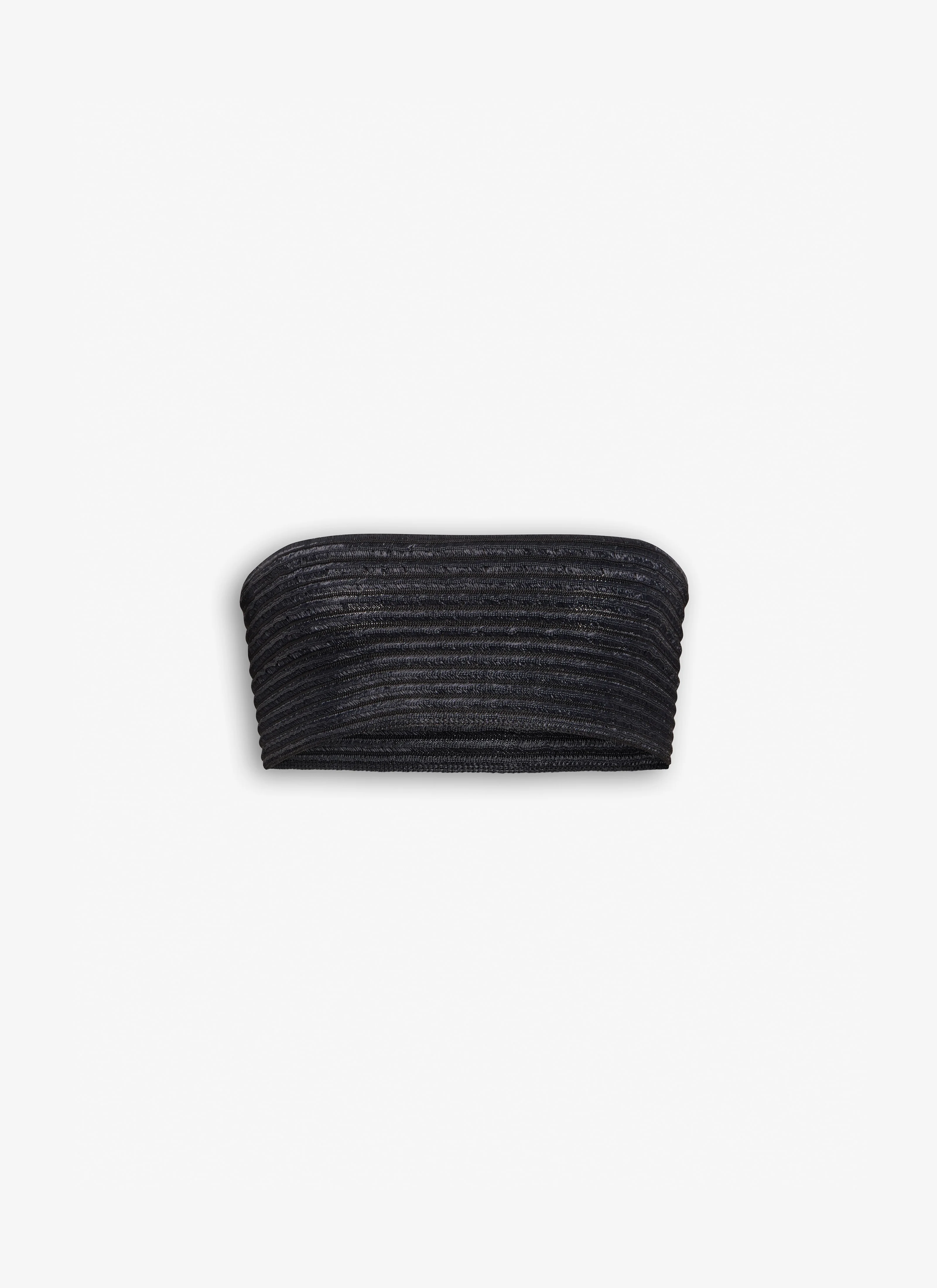 Bandeau bustier knitted from raffia bands creating a 3D circular pattern Side invisible zipper closure Cropped cut Made in Italy DETAILS MAIN MATERIAL : 100% VISCOSE PRODUCT REFERENCE : AA9H1227K067B - 995