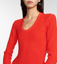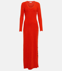 Amplify your edit with this show-stopping maxi dress from sculptural expert Alaia. It features a ribbed knit design that contours the body and is detailed with a buttoned side split for maximum sophistication. Product Details - Made in Italy - Material: 91% viscose, 2% elastane, 7% polyamide - Closure: buttoned front - Designer color name: Rouge Orange - Care instructions: dry clean - Item number: P00700891 Size & Fit - True to size - Fitted - The model seen in the picture is 178cm-5'10" and wearing a size FR 36