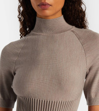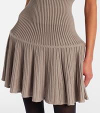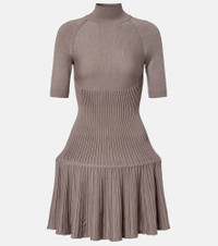 Upholding the legacy of Azzedine Alaia, the maison’s designs achieve an artful balance between sculptural and wearable. This beige minidress is ribbed-knit in Italy from a soft wool-blend and features a fitted bodice and a peplum. Product Details - Material: 92% wool, 6% polyamide, 2% elastane - Care instructions: dry clean - Made in Italy - Color: beige - Designer color name: Beige Chine - Details: 96% wool, 3% polyamide, 1% elastane - Collar: mockneck - Cuff: ribbed - Item number: P01112234 Size & Fit - True to size - Fitted bodice, loose skirt - Stretchy fabric - Please note: small cups - The model seen in the picture is 178cm-5'10" and wearing a size FR 34