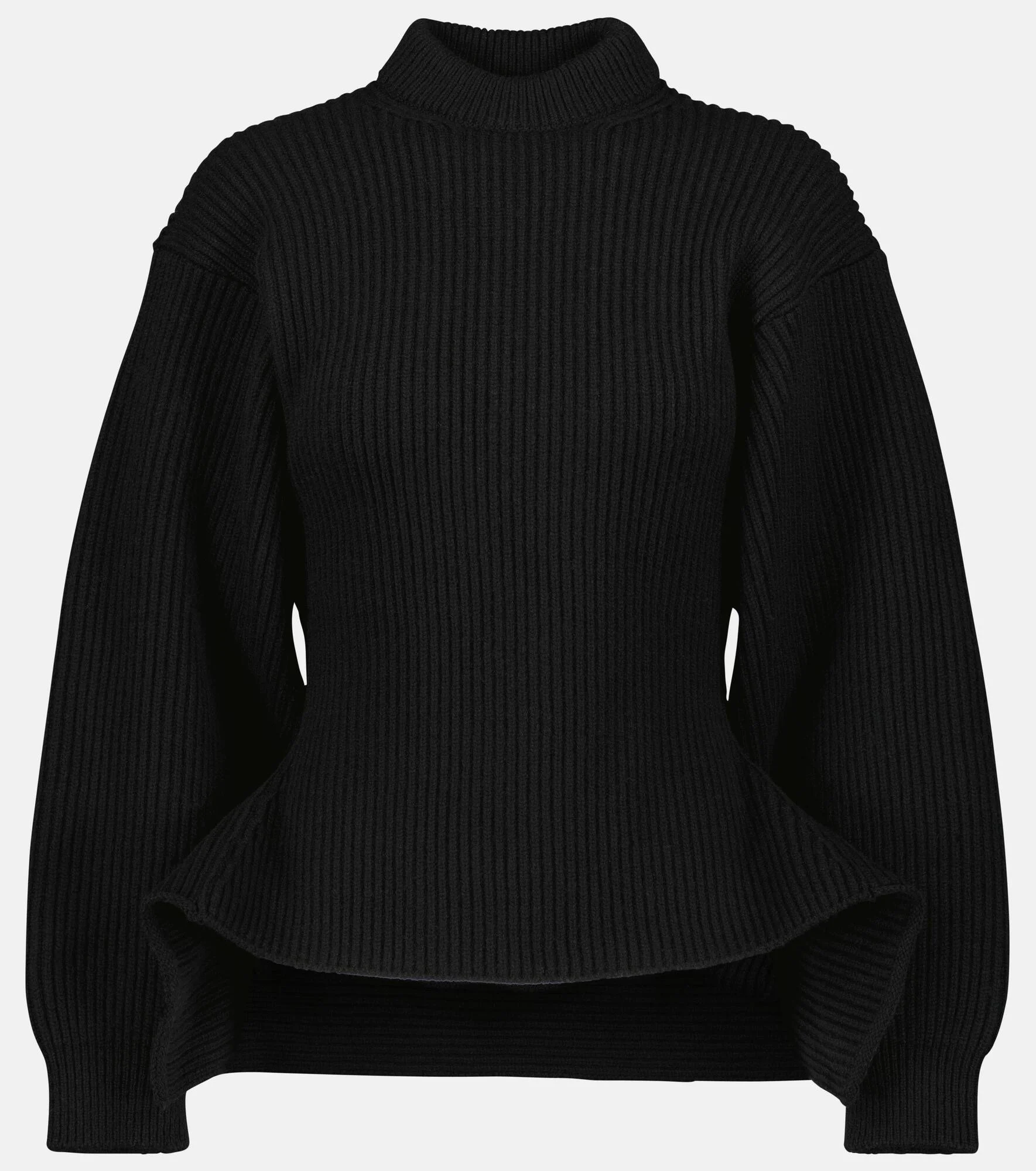 This sweater from Alaïa is defined by its sculptural peplum silhouette. Made from a ribbed wool and cashmere knit, it has a crewneck and fitted cuff sleeves. - material: 92% wool, 8% cashmere - care instructions: dry clean - Made in Italy - Designer colour name: 999 Noir