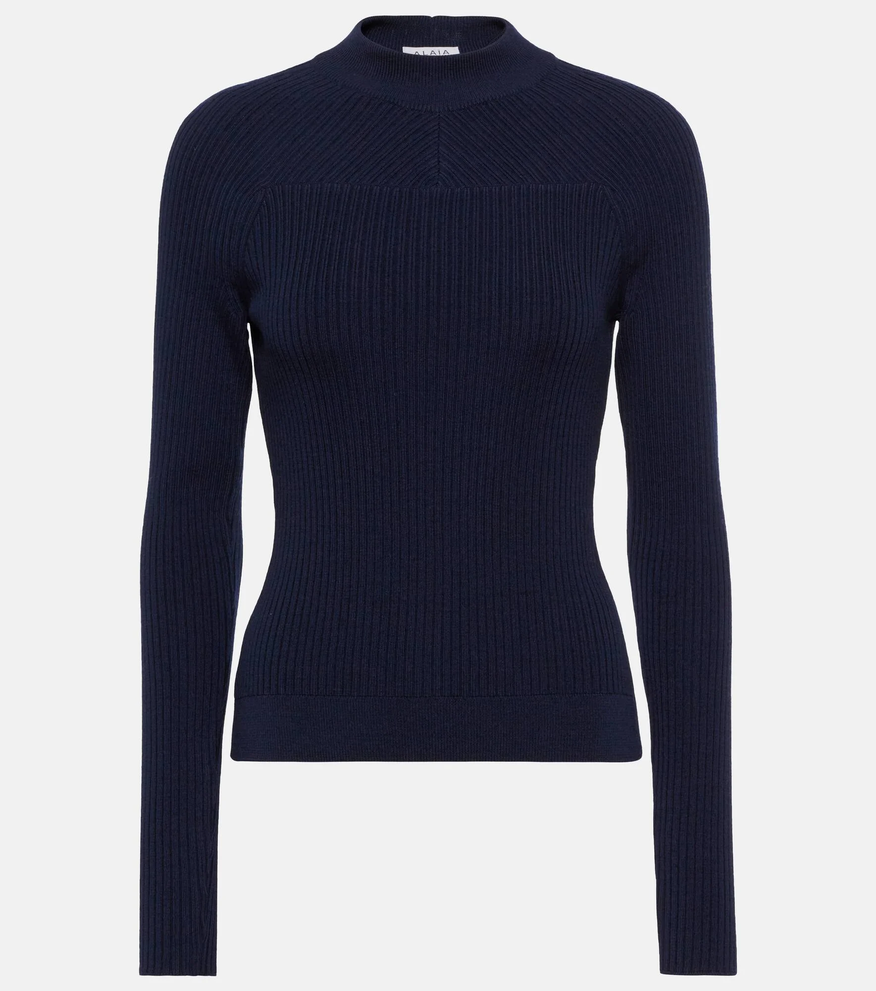 This top from Alaïa is designed with the label's signature form-flattering ribbed-knit technique. It's made from a wool blend with an alluring open back that offsets the high neck. Product Details - Made in Italy - Material: 50% wool, 50% viscose - Care instructions: dry clean - Designer color name: Marine - Item number: P00634484 Size & Fit - True to size - Fitted - Mid-weight material - Falls to the hip - The model seen in the picture is 178cm-5'10" and wearing a size FR 36