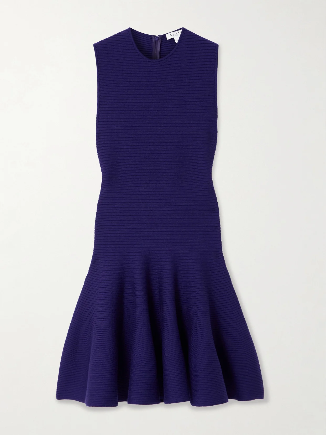 Alaia's skater-style mini dress is fitted through the bodice and dramatically flares to a structured mini skirt. It's made from wool-blend with a ribbed texture and has a high neckline. Wear yours with the label's mesh ballet flats.