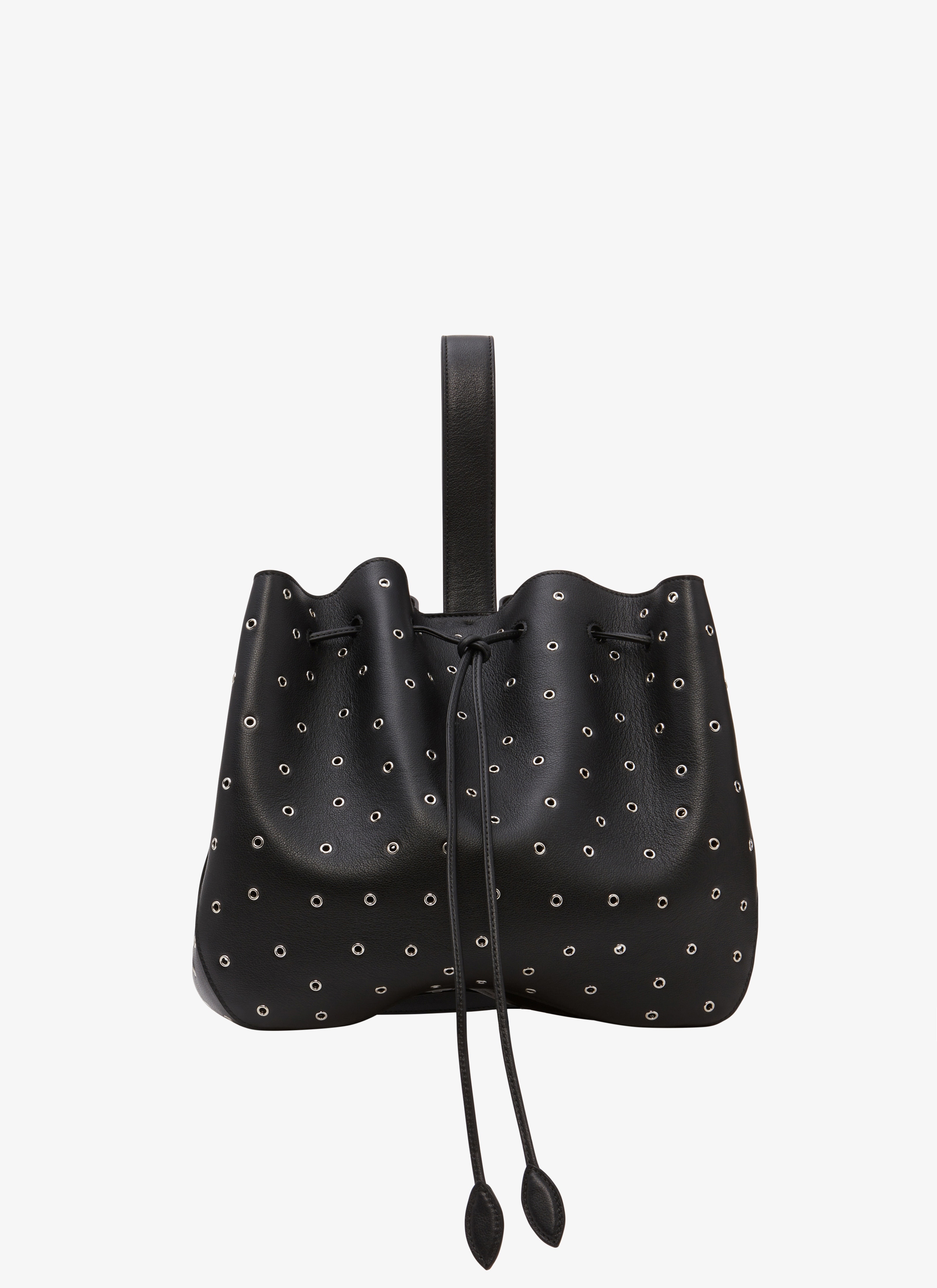 medium bucket bag hand carry thanks to the wristlet handle or shoulder carry thanks to the leather strap snap closure system dimensions (cm): l 28 x h 27 x d 16 made in italy DETAILS COMPOSITION: 100% CALFSKIN LINING: 100% LAMBSKIN PRODUCT REFERENCE: AA1S01216CA252 - 999