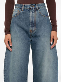 cotton jeans Highlights - Navy blue - Front button fastening - Classic five pockets - Belt loops - Wide leg Made in Italy Composition Lining: Polyester 65%, Cotton 35% Outer: Cotton 99%, Polyurethane 1% SIZE & FIT Model measurements Height 5 ft 10 in(1.79 m) Bust/Chest 31.88 in(81 cm) Hips 35.43 in(90 cm) Waist 23.62 in(60 cm) Washing instructions Machine Wash