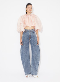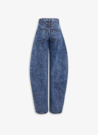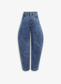 Round jeans in snow denim High waist, curved leg, hardware denim buttons, contrasted tobacco-coloured topstitching details Signature darts stitching details at the back Made in Italy DETAILS MAIN MATERIAL : 99% COTTON 1% POLYURETHANE PRODUCT REFERENCE : AA9P0176T535A - 524