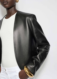 Collarless jacket in lambskin leather Open-front, long sleeves, cropped length, rounded hemline Tailored fit Made in Italy DETAILS MAIN MATERIAL : 100% LAMBSKIN LEATHER PRODUCT REFERENCE : AA9V1121C228B - 995