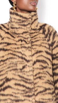 DETAILS Single breasted tiger jacquard coat in wool Round cut, relaxed fit, mid calf length. welt pockets Raglan sleeves Fully lined, high collar Made in Italy MATERIALS Highlights MAIN MATERIAL: 52% LLAM WOOL/LAMA, 43% WOOL, 5% POLYAMIDE MAIN LINING: 100% POLYAMIDE POCKET LINING: 100% COTTON PRODUCT REFERENCE: AA9M1137W131C-954