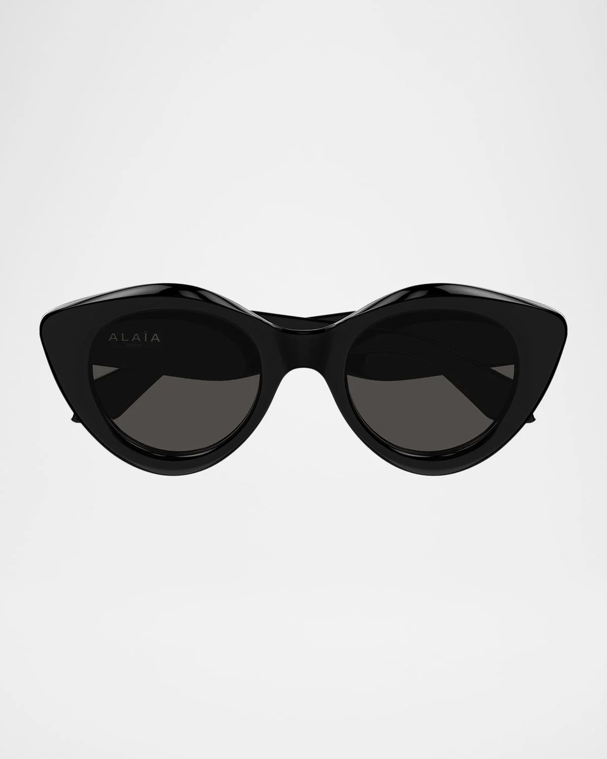 Featuring a feminine silhouette crafted of shiny acetate, the "AA0091S" sunglasses by ALAIA are a musthave accessory with sophisticated style. Lens/bridge/temple (in mm): 5023140 Rounded cateye frames Fixed nose pads Wide, tapered arms with logo script on temples 100% UVA/UVB protection Made in Italy