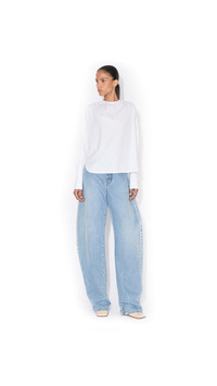 DETAILS Ruched shirt in striped poplin Round collar, long sleeves, buttoned cuffs Regular fit Pull on, back button, gathered fabric from the shoulders, curved hem finish Made in Italy MATERIALS Highlights MAIN MATERIAL:100% COTTON PRODUCT REFERENCE: AA9C1003W124C-031