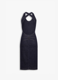 compact bodycon dress sleeveless straps cross at the back scoop neckline midi length made from stretch brut denim made in italy DETAILS COMPOSITION: 90% COTON, 8% POLYESTE, 2% ELASTANE PRODUCT REFERENCE: AA9R13005T573 - 516