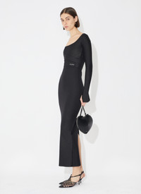 long sculpting dress cross-over band belt with velcro fastening contrasting white rubber logo long sleeves and a wide neck opening made from matt sculpting jersey made in italy DETAILS COMPOSITION: 74% POLYAMIDE ADDITIONAL MATERIAL: 26% ELASTANE THE MODEL MEASURES 1m78 AND WEARS A SIZE 36 PRODUCT REFERENCE: AA9R11744J047 - 995