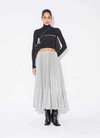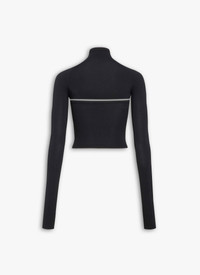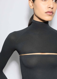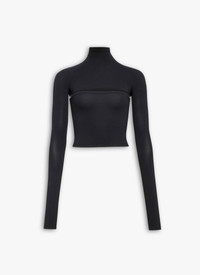 Cut-out top in second-skin knit High neck, long sleeves Modular two-piece garment Cropped cut Made in Italy DETAILS MAIN MATERIAL : 75% POLYAMIDE 25% ELASTANE PRODUCT REFERENCE : AA9H1368K127B-995