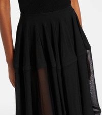 Upholding the legacy of Azzedine Alaia, the maison’s designs achieve an artful balance between sculptural and wearable. This midi skirt is crafted in Italy and boasts a semi-sheer construction with a high-rise, elasticated waistband. Product Details - Material: 76% viscose, 24% polyamide - Care instructions: dry clean - Made in Italy - Color: black - Designer color name: Noir Alaia - Elasticated waistband - Item number: P01112331 Size & Fit - True to size - Semi-sheer - Slightly stretchy fabric - High-waisted - The model seen in the picture is 178cm-5'10" and wearing a size FR 34