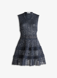 crinoline sequin skater dress sleeveless, crew neck large armhole volume exploding from the waist created by exclusive alaïa technique mimicking the effect of a traditional crinoline ribbon made from a shiny sequin knit made in italy DETAILS COMPOSITION: SKIRT: 49% VISCOSE, 32% POLYAMIDE, 18% POLYESTER, 1% ELASTANE TOP: 54% VISCOSE, 25% POLYAMIDE, 21% POLYESTER EDGE: 65% VISCOSE, 21% POLYESTER, 14% POLYAMIDE PRODUCT REFERENCE: AA9R23935M806 - 568