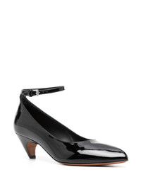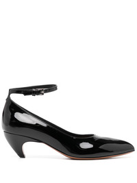 Shark 55mm leather pumps Highlights - Black - Calf leather - Patent finish - Pointed toe - Buckle-fastening ankle strap - 55mm kitten heel - Branded leather insole - Leather outsole Made in Italy Composition Outer: Calf Leather 100% Sole: Calf Leather 95%, Rubber 5% Lining: Lambskin 100% SIZE & FIT Measurement CIRCUMFERENCE 9.48 in(24.1 cm) HEEL 2.16 in(5.5 cm) HEIGHT 3.14 in(8 cm)