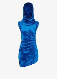 mini hood dress integrated hood draped skirt bodyconscious knitted in a high shine chenille yarn made in italy DETAILS COMPOSITION: 85% VISCOSE ADDITIONAL MATERIAL: 15% POLYAMIDE THE MODEL MEASURES 1m79 AND WEARS A SIZE 36 PRODUCT REFERENCE: AA9R23864M809 - 510