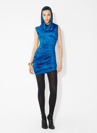 SHINY VELVET MINI HOOD DRESS