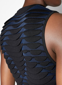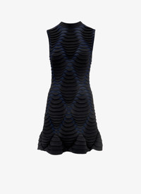 Sleeveless fitted python effect dress, flarred hem, mock neck, godets, tone-on-tone scallops. Made in Italy DETAILS COMPOSITION: 81% VISCOSE, 14% POLYESTER, 4% POLYAMIDE, 1% ELASTANE PRODUCT REFERENCE: AA9R22161M684 - 547