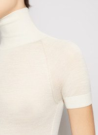 Knitted sheer body High fitting neck Soft hand feel Light-weight, sheer Knitted in an ultrafine merino wool Made in Italy DETAILS COMPOSITION: 100% WOOL PRODUCT REFERENCE: AA9B03086M894 - 054