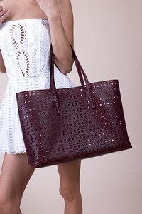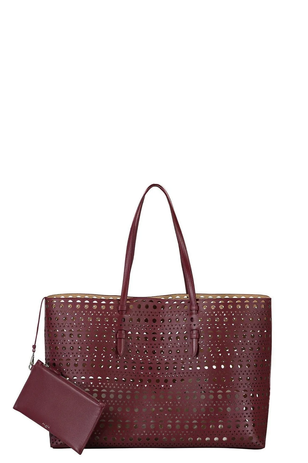 DETAILS AND INSIGHT Alaia mina 44 in rouge. Calf Leather 7.9"H x 15.8"W x 3.9"D Fits Iphone 15 Pro Max Made in IT Style AA1S06844CA263-325