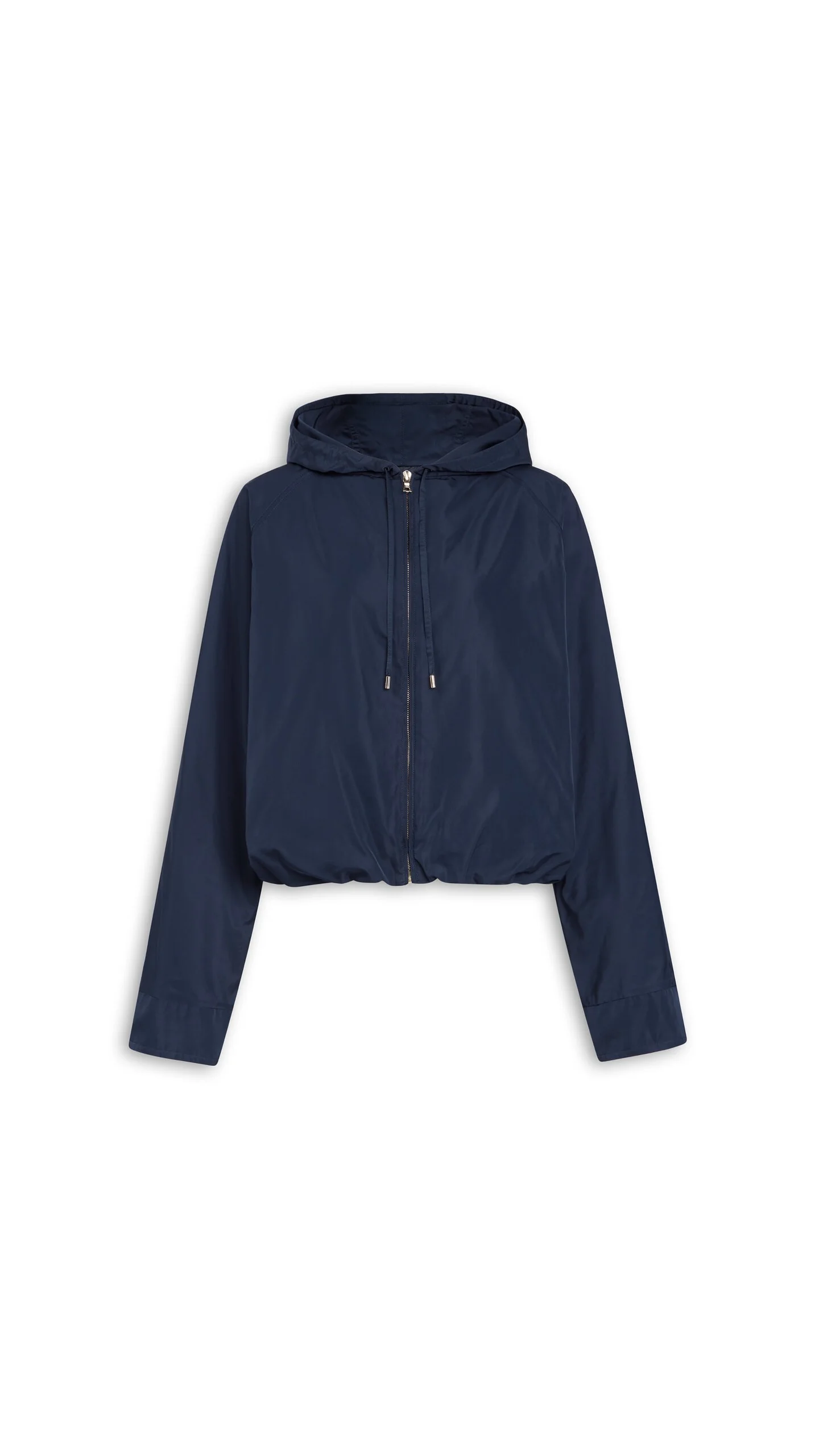 DETAILS Hooded windjacket in radzimir Relaxed fit and integrated hood with drawstring Raglan sleeves Gold hardware zip, elasticated straight hem Made in Italy MATERIALS Highlights MAIN MATERIAL: 70% POLYESTER, 30% SILK ;MAIN LINING: 100% POLYAMIDE PRODUCT REFERENCE: AA9V1232W128C-A09