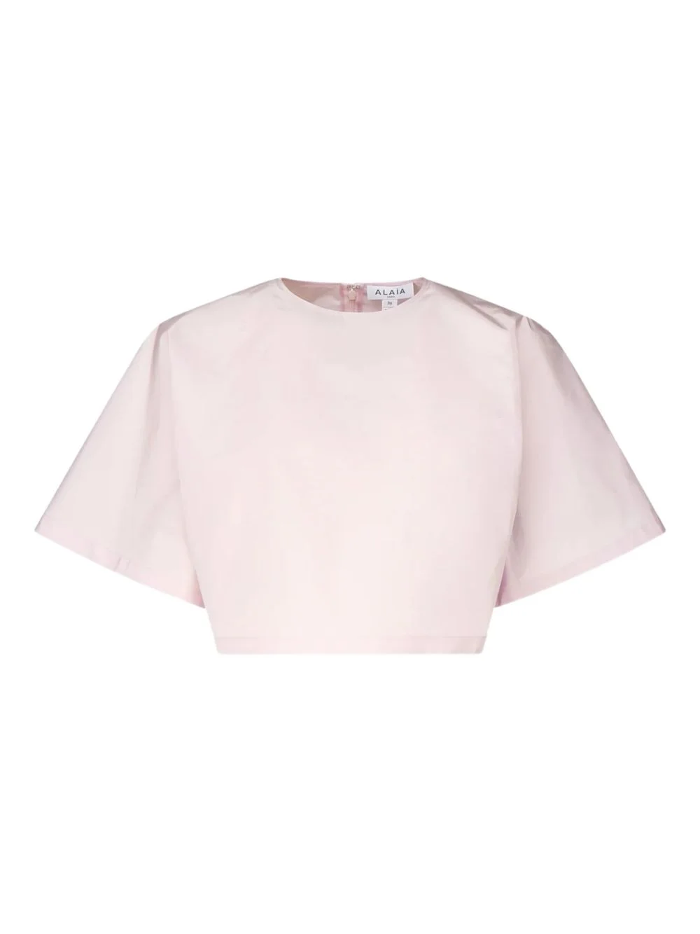 tafetta short-sleeves T-shirt Highlights - Pale pink - Short sleeves - Crew neck - Zip back fastening Imported Composition Cotton 100% Washing instructions Read Manufacturer Guidelines