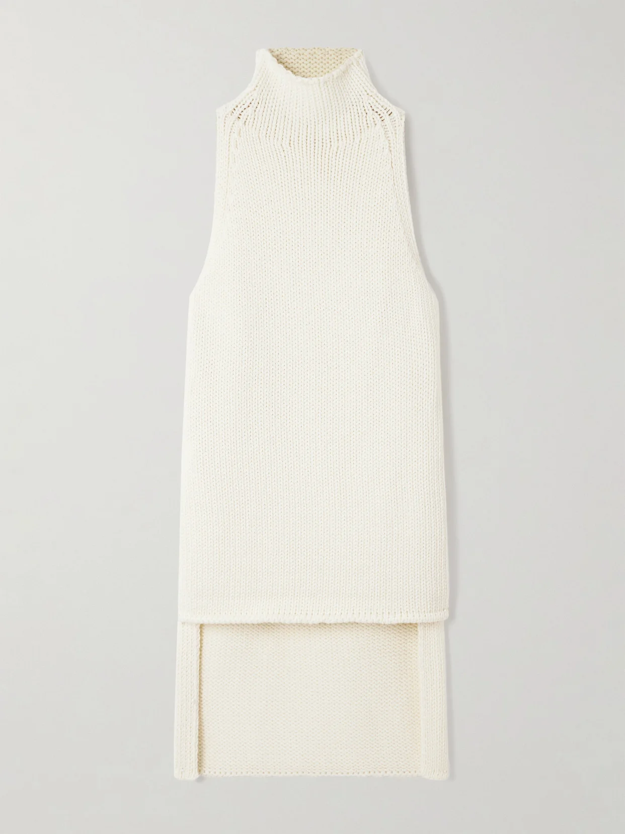 Playing with proportions is one of Alaia's fortes. Knitted from warming wool, this turtleneck sweater has a relaxed, sleeveless shape with an exaggerated longline hem at the back, creating the effect of a dramatic cape. Style yours with a pair of the house's barrel-leg jeans.