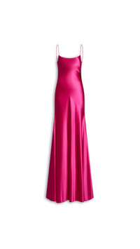 DETAILS Slip dress in satin Maxi length, square neck, sleeveless Slim fit cinched at the waist, softly flaired from the knee down Invisible side zip closure, bias-cut, unlined Made in Italy MATERIALS Highlights MAIN MATERIAL: 100% SILK PRODUCT REFERENCE: AA9R2805W125C-489