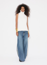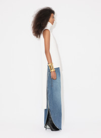 Round denim pants Slashes on both sides revealing the skin Hidden side pockets Features iconic darts at back Crafted in Japanese stone washed denim Made in Italy DETAILS COMPOSITION: 99% COTTON, 1% POLYURETHANE PRODUCT REFERENCE: AA9P02536T536 - 525