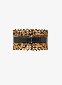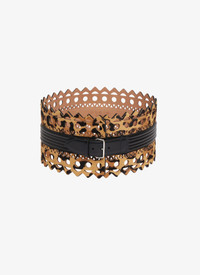 openwork leather corset belt one central buckle laser-cut leather perforations vienne pattern dimensions (cm): h 12 made in italy DETAILS COMPOSITION: 100% CALF LEATHER LINING: 100% LAMBSKIN PRODUCT REFERENCE: AA1C015GCA253 - 157