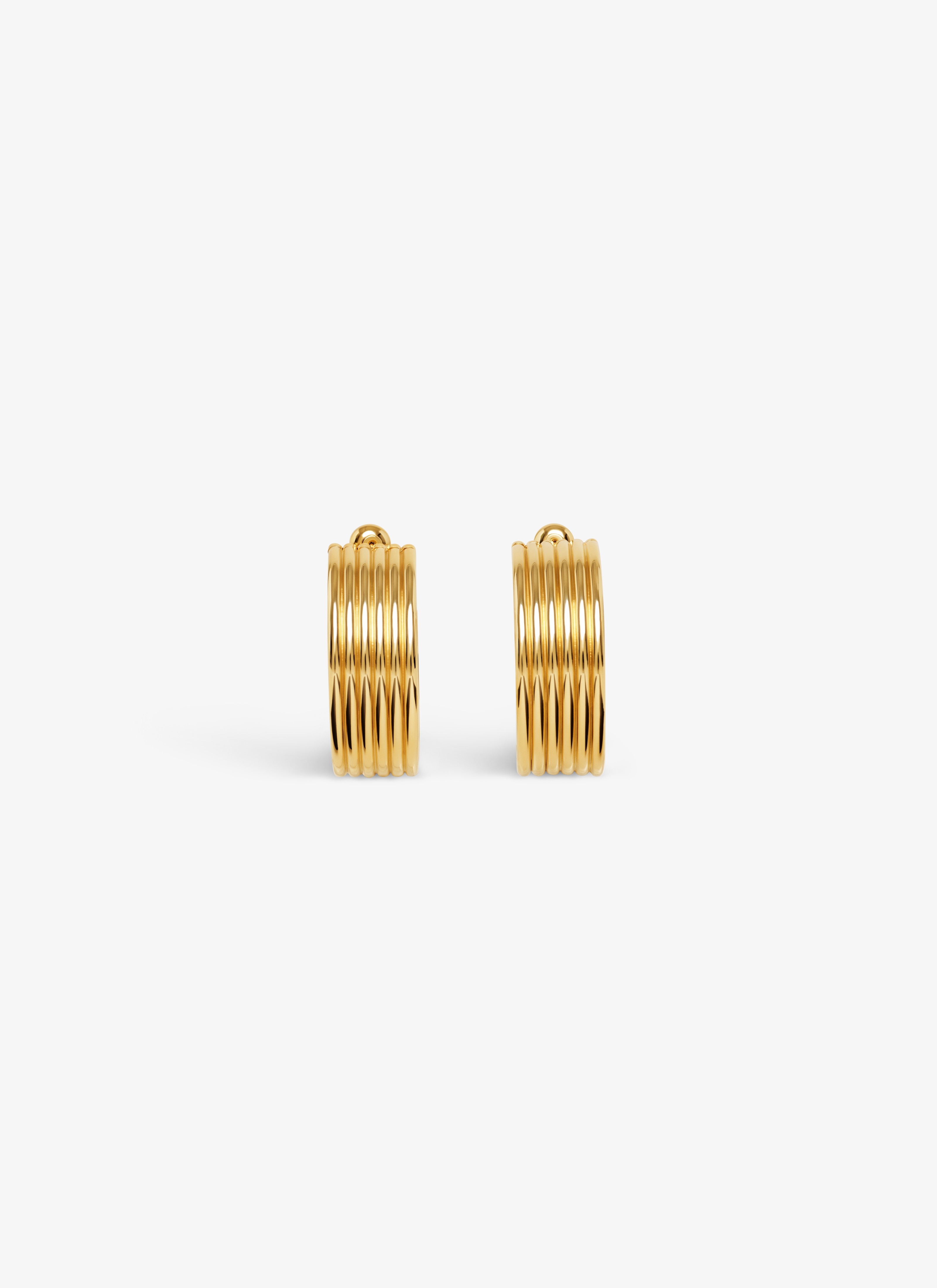 medium textured hoop earring drop shaped pin cover sold in pairs pierced ears (pin) made in italy DETAILS COMPOSITION: 100% BRASS GOLD PLATTERING PRODUCT REFERENCE: AA2B061LA006 - 220