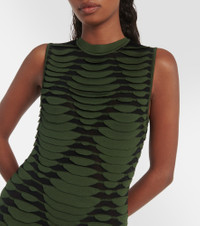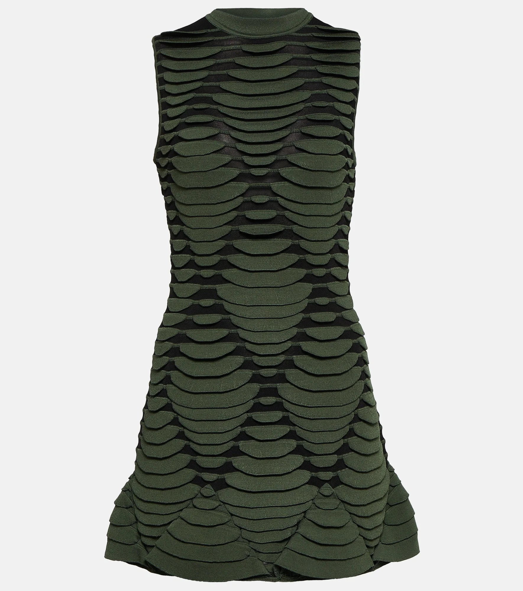 A design like no other, this Alaïa minidress is knit to mimic a tonal snake print. Shaped for a figure-hugging fit with godets at the hem for slight volume, it's a textured, wearable work of art. Product Details - Material: 78% viscose, 14% polyester, 6% polyamide, 1% polyurethane, 1% elastane - Care instructions: dry clean - Made in Italy - Material II: 71% viscose, 15% polyester, 11% polyamide, 3% elastane - Item number: P00846488 Size & Fit - Fits small to size - we recommend trying one size larger - Cinched waist - Mid-weight material - The model seen in the picture is 178cm-5'10" and wearing a size FR 38