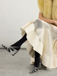 Alaia's sandals have a cage-like construction, revealing glimpses of skin. They're made from snakeskin with elasticated slingback straps and 90mm block heels.