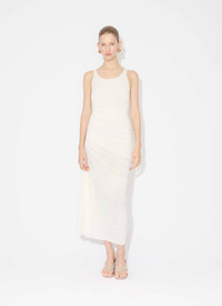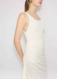 Asymmetrical sleeveless dress in soft jersey Maxi length, scoop neckline, gathered side with adjustable string Tonal lining Bodycon fit Made in Italy DETAILS MAIN MATERIAL : 96% VISCOSE 4% ELASTANE PRODUCT REFERENCE : AA9R2742J050B - 000