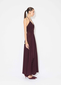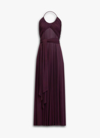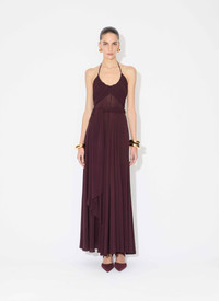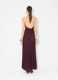 Long cross bare back dress in draped soft jersey Fitted bodice, fluid skirt, halter neck with thin straps, self tying belt Fluid fit Made in Italy DETAILS MAIN MATERIAL : 96% VISCOSE 4% ELASTANE PRODUCT REFERENCE : AA9R2707J050B - 332