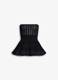 Crinoline top Spaghetti detachable straps Square or bustier neckline Cinched at the waist by a ribbed band Knitted in high shine viscose Made in Italy DETAILS COMPOSITION: TOP 100% VISCOSE ADDITIONNAL MATERIALS BELT: 90% VISCOSE , 6% POLYAMIDE, 4% ELASTANE PRODUCT REFERENCE: AA9H11096M712 - 995