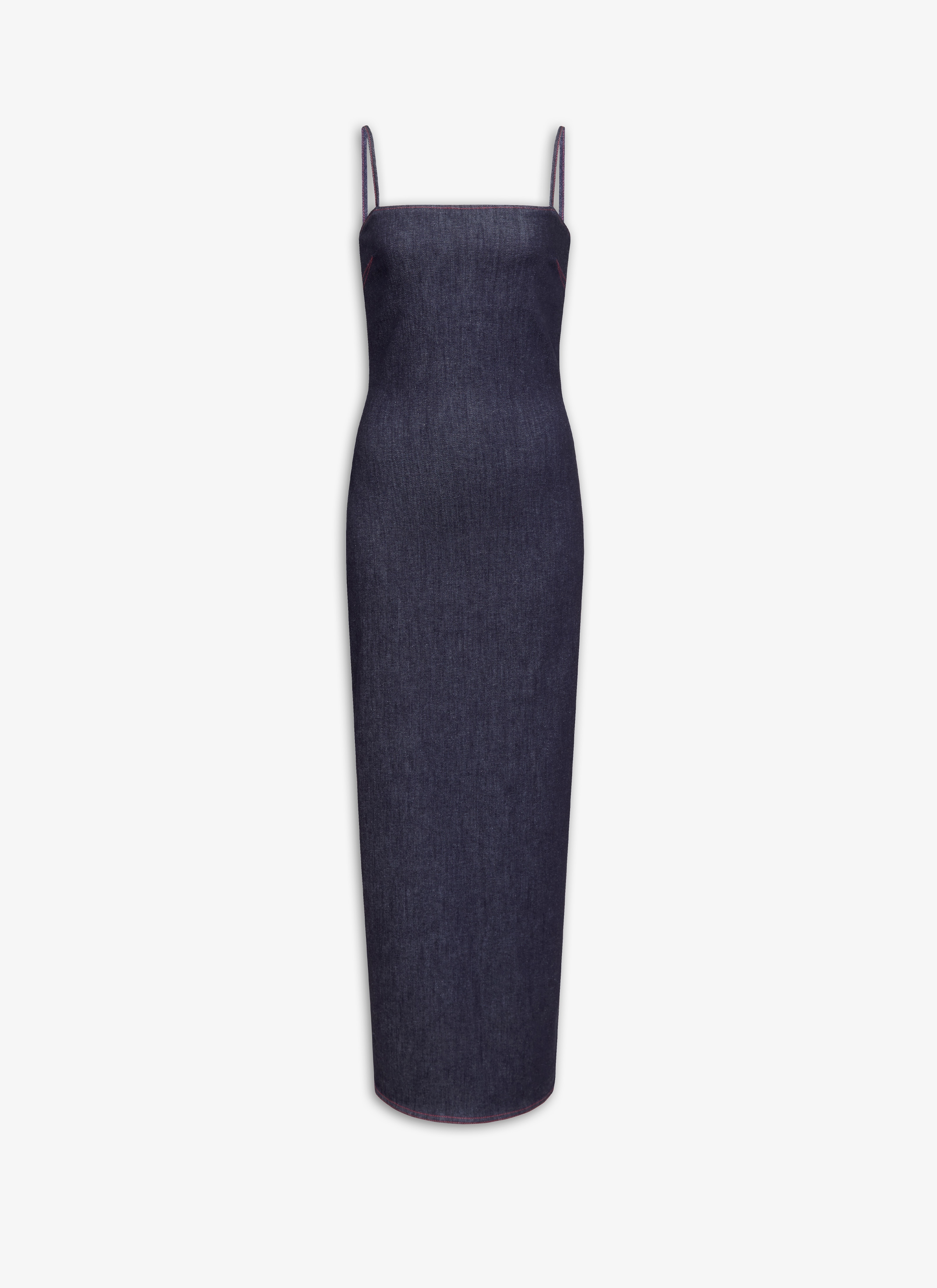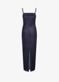 Spaghetti straps denim dress Square neckline and figure hugging Invisible zipper on the side Red constrasting upstitching Made from brut stretch denim Made in Italy DETAILS COMPOSITION: 90% COTTON, 8% POLYESTER, 2% ELASTANE PRODUCT REFERENCE: AA9R11586T664 - 530