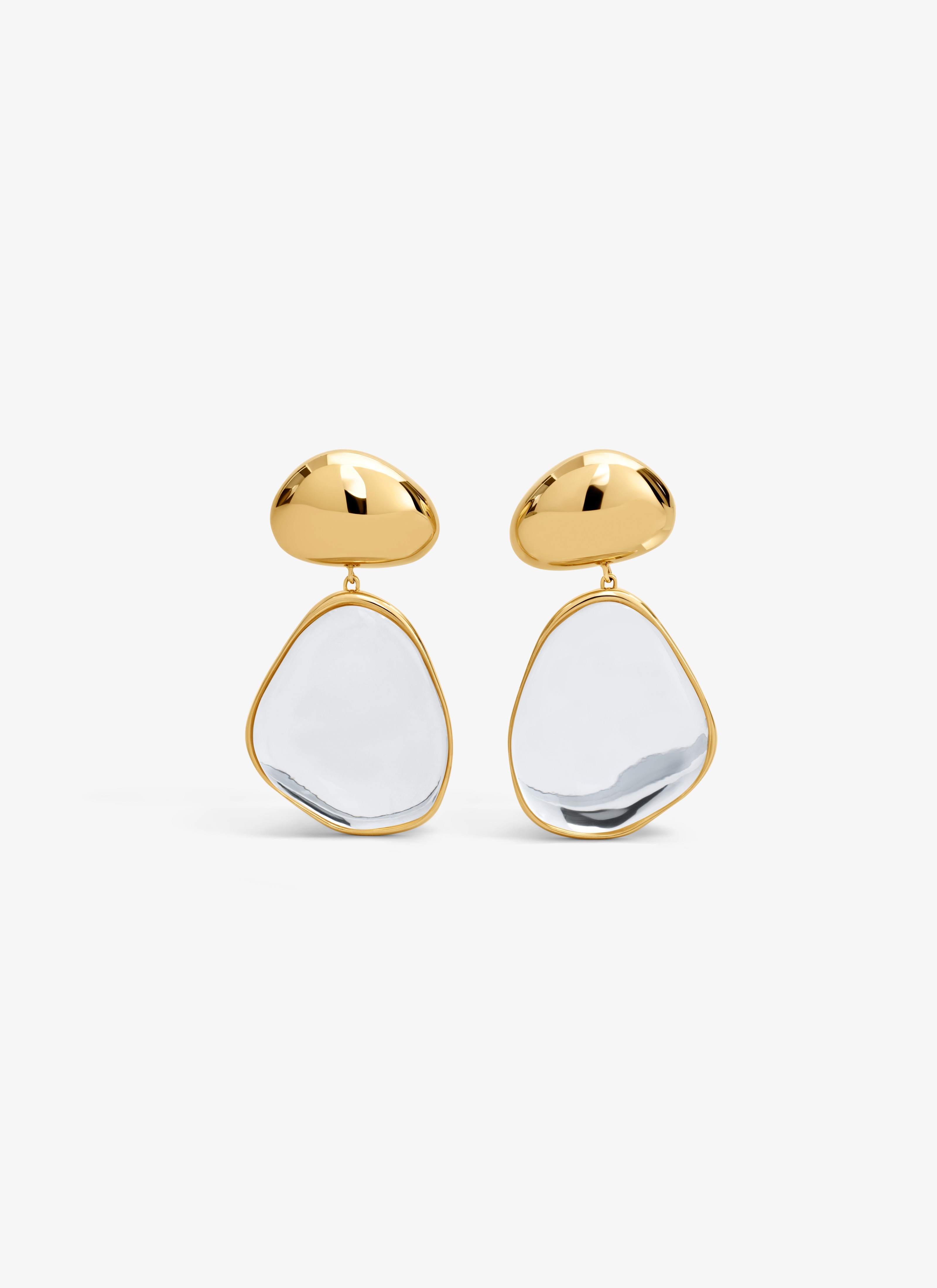 Pendant earrings with one mirror effect cabochon Pierced ears (Pin) Lenght: 8cm Widest width: 4cm Made in Italy DETAILS MAIN MATERIAL: 100% ALUMINIUM SECONDARY MATERIAL: 100% BRASS THIRD MATERIAL: 100% RESINE PRODUCT REFERENCE: AA2B089LA026 - 098