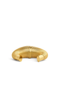DETAILS Cuff Sculptural spring design Steel Diameter: 8,5 cm Made in Italy MATERIALS MAIN MATERIAL:100% STEEL PRODUCT REFERENCE: AAJB1009LA033-220