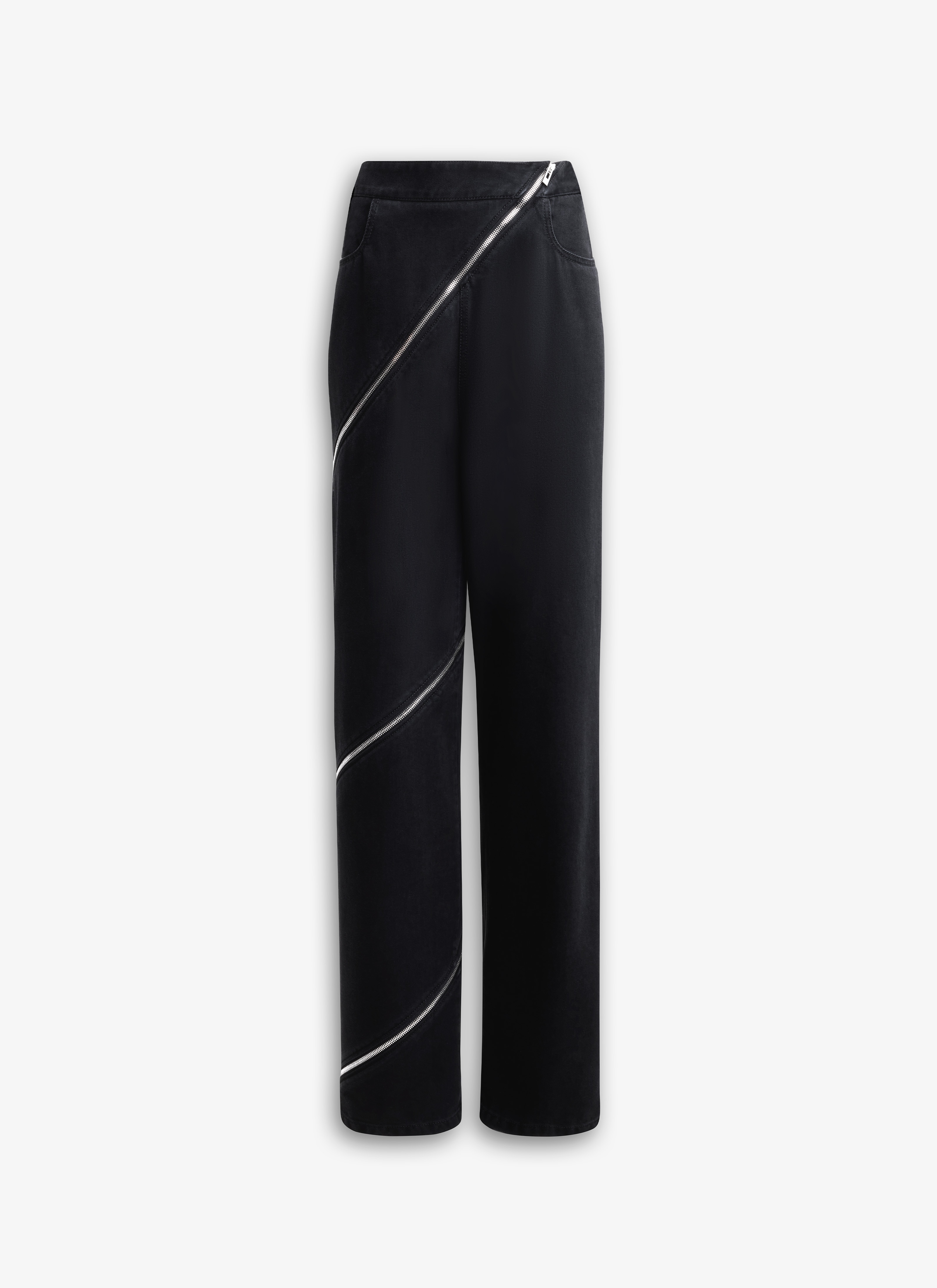 Zipped spiral jeans in black denim Straight leg Functional asymmetrical zipper in contrasting metal along the entire length of the leg Made in Italy DETAILS COMPOSITION: 99% COTTON, 1% POLYURETHANE POCKET LINING: 65% POLYESTER, 35% COTTON PRODUCT REFERENCE: AA9P0295D003A - 995