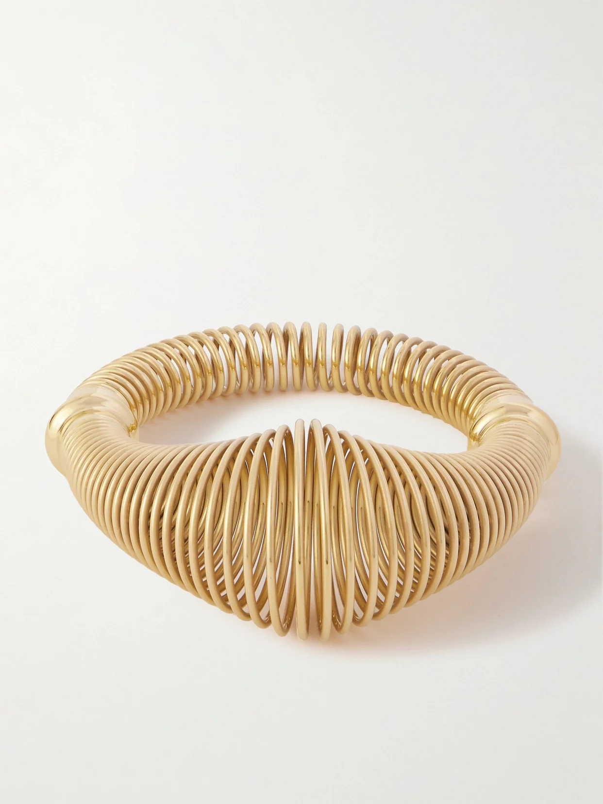 Alaia's 'Spiral' bracelet is inspired by springs. It's been made in Italy from gold-tone stainless steel and has a domed shape.