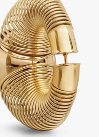 Hoop earrings made of a thin entwined wire Tonal metal sphere at the center Pierced ears Mix of stainless steel and brass Made in Italy DETAILS MAIN MATERIAL:100% STEEL SECONDARY MATERIAL:100% BRASS PRODUCT REFERENCE : AA2B127LA042 - 220